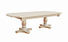 Большой овальный стол из массива березы, который с помощью трех вставок может быть увеличен почти вдвое. В собранном виде вставки находятся внутри стола. Одна из трех тонировок дерева на выбор покупателя.