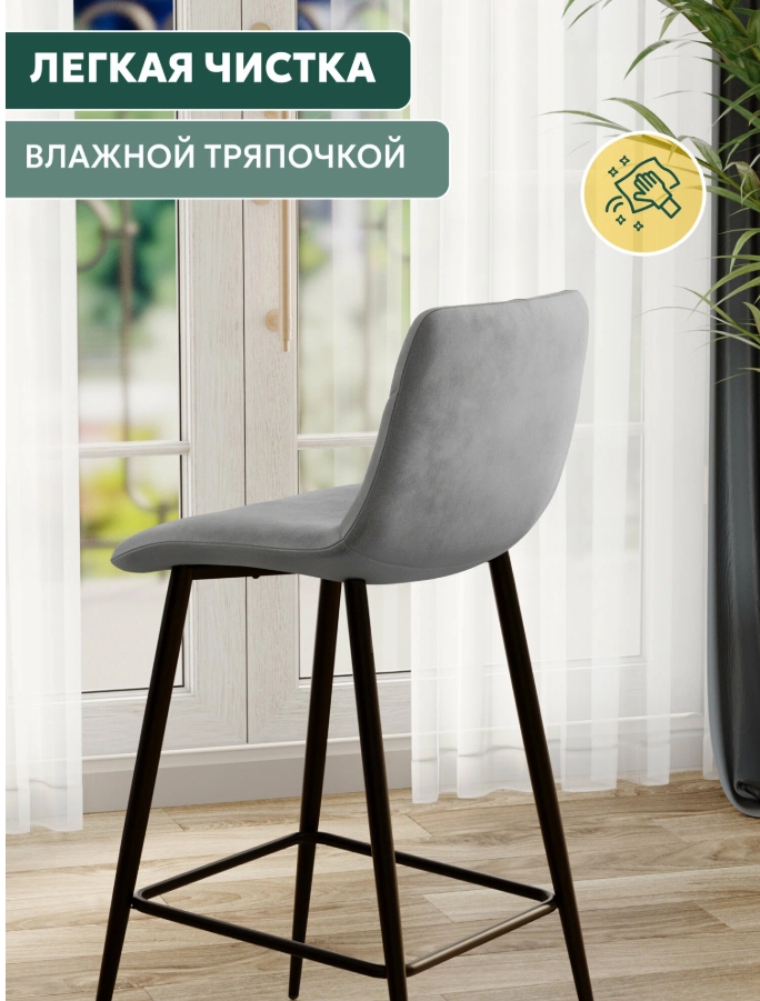 Стул барный BC-2103 (каркас черный тк.серый/ Velvet HLR-20)